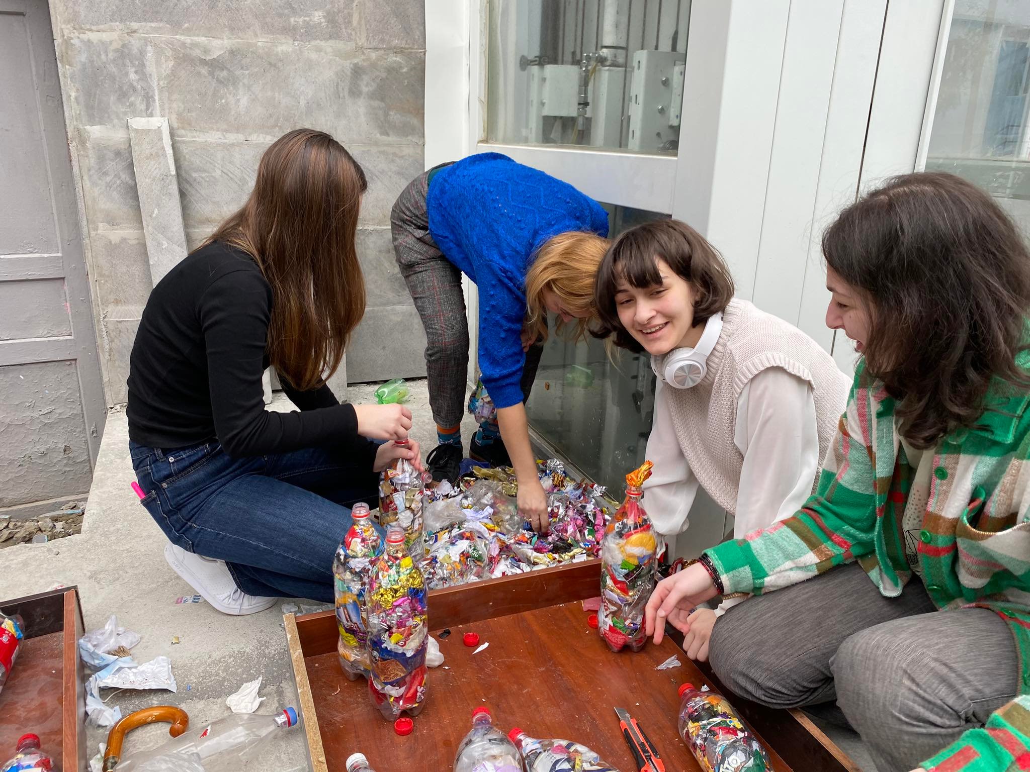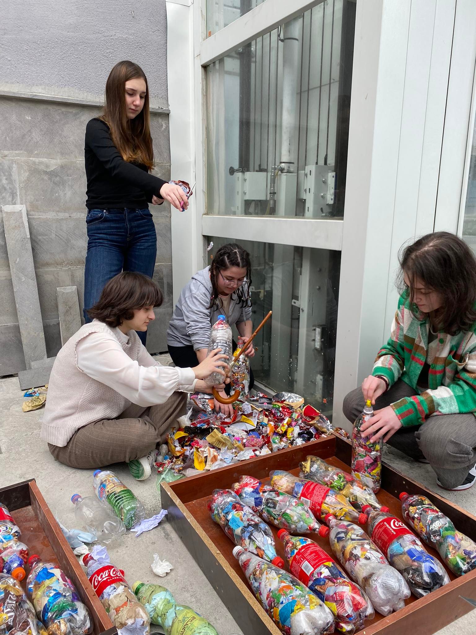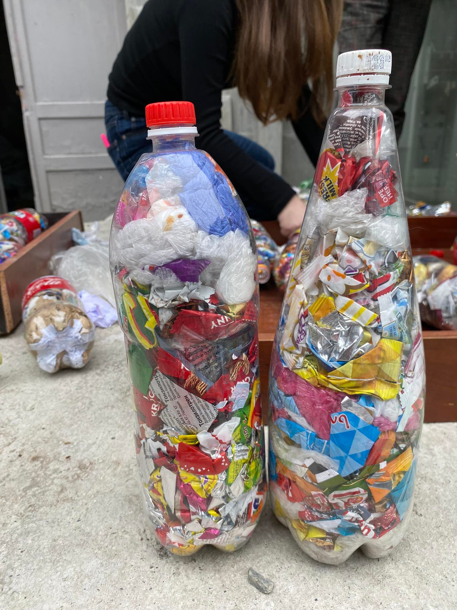 "გახადე უსარგებლო სასარგებლოდ"-- ამ უსარგებლო ქაღალდებით ბუდრუგანები უნდა დადგან, (ხელმძღ.ნანა კალანდაძე), გულმოდგინედ მუშაობენ: აგროვებენ, ტენიან პლასტმასის ბოთლებში, აცემენტებენ და მალე შედეგსაც ვნახავთ.
