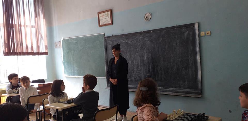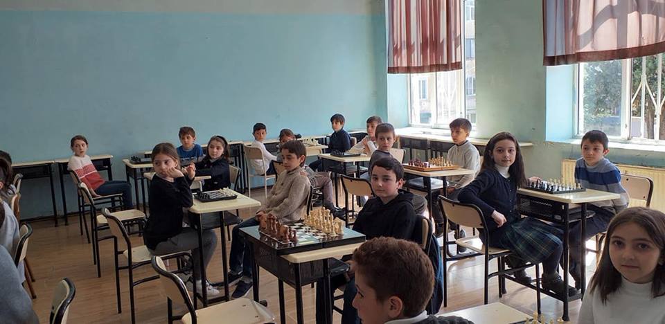 შეჯიბრება ჭადრაკში მესამე კლასელთა შორის, რომელიც ბავშვებმა საქართველოს დამოუკიდებლობის დღეს მიუძღვნეს. (ხელ-ლი თამარ კვაჭანტირაძე)